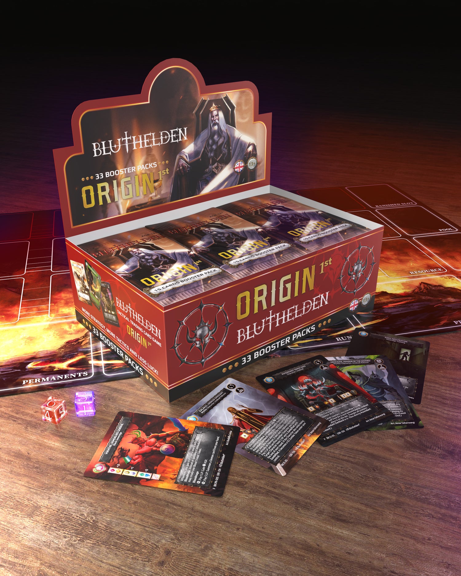 - Nutze diese zeitlich begrenzte Gelegenheit, um "Bluthelden®: Origin" zu Sonderpreisen für Booster-Boxen, Starter-Decks, Würfel und Spielmatten zu bestellen.