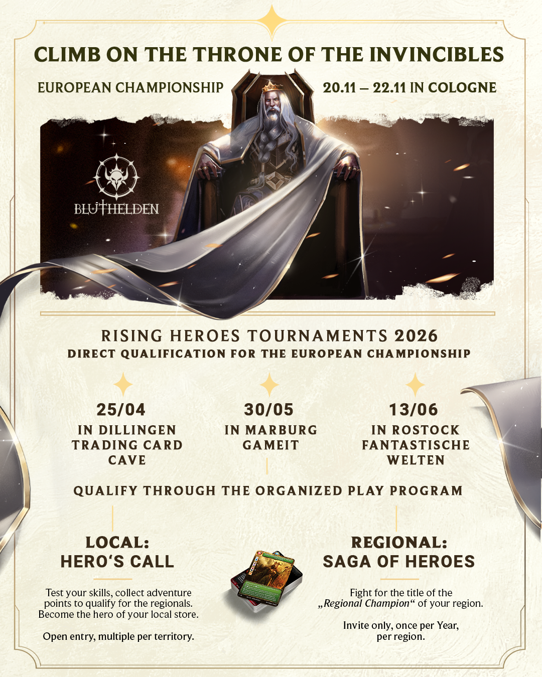 Das Lorebuch, das in diesem Jahr erscheint, endet kurz vor der entscheidenden Schlacht. Diese Schlacht wird nicht geschrieben – sie wird gespielt. Am Spieltisch, mit eurem Deck, gegen andere Spieler.